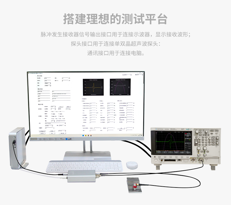 在超聲波檢測(cè)過(guò)程中,探頭起著非常重要的作用,探頭性能的好壞將直接影響到探傷結(jié)果的準(zhǔn)確性和可靠性。測(cè)試平臺(tái)可以對(duì)探頭在工作狀態(tài)下回波信號(hào)作出時(shí)域響應(yīng)和頻域響應(yīng)的測(cè)量與分析。