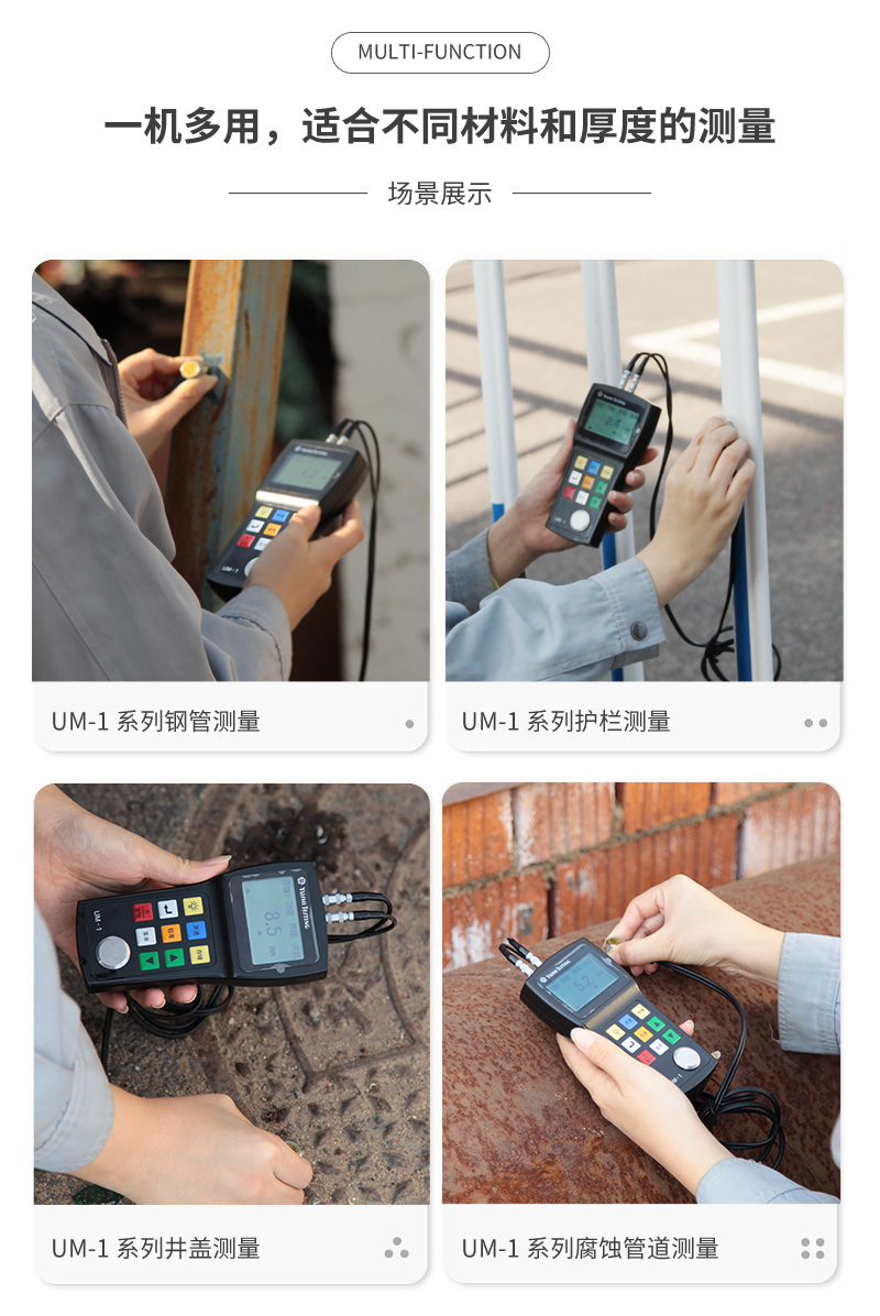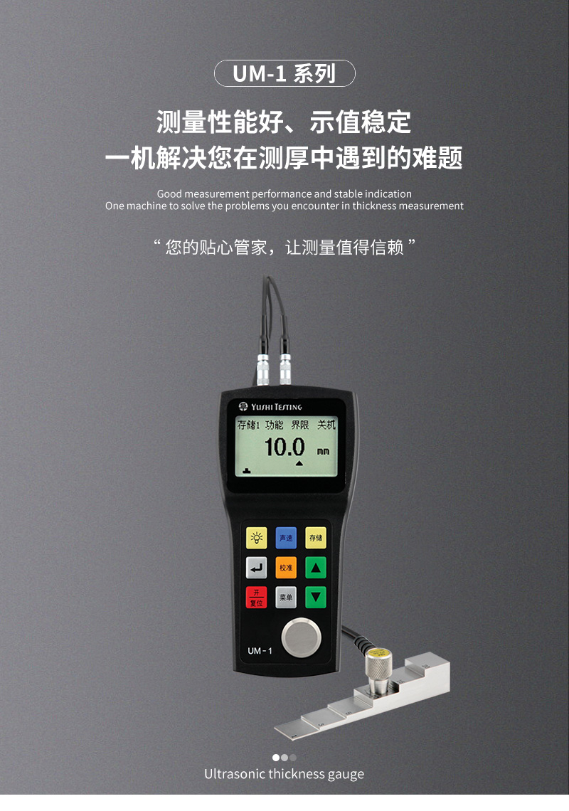 我廠研制并生產(chǎn)的UM系列超聲波測(cè)厚儀采用超聲波測(cè)量原理,是一種小型測(cè)量?jī)x器。它能速度快、無(wú)損傷、正確地進(jìn)行測(cè)量。本儀器可應(yīng)用于制造業(yè)、金屬加工業(yè)、化工業(yè)、商檢業(yè)等檢測(cè)領(lǐng)域,適用于能使超聲波以一恒定速度在其內(nèi)部傳播,并能從其背面得到反射的各材料厚度的測(cè)量。除可對(duì)各板材和各加工零件作正確測(cè)量外,還可以對(duì)生產(chǎn)設(shè)備中各管道和壓力容器進(jìn)行監(jiān)測(cè),監(jiān)測(cè)它們?cè)谑褂眠^(guò)程中受腐蝕后的減薄程度,是材料保護(hù)的可選檢測(cè)儀器。