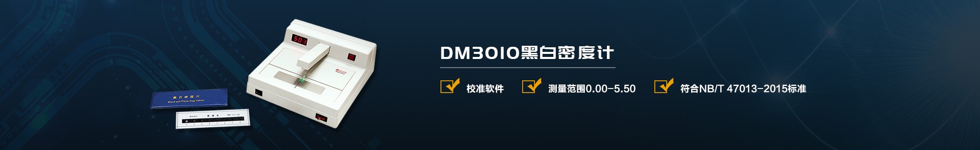 產(chǎn)品型號(hào):DM3010A / DM3011 黑度范圍 DM3010A:0.0-4.5D DM3011 :0.0-5.0D 應(yīng)用范圍:2012年我廠開發(fā)的DM3000系列黑白密度計(jì)。它具有讀數(shù)正確、穩(wěn)定性好、操作方便等特點(diǎn)。適用于印刷、PCB菲林、無損檢測(cè)、感光材料、電影、醫(yī)療、包裝薄膜(薄膜、鍍膜涂布膜膜層厚度及均勻性檢測(cè))、有色玻璃等行業(yè)的檢測(cè),可以通過自帶的校準(zhǔn)軟件進(jìn)行校準(zhǔn),適應(yīng)不同的密度曲線. 符合標(biāo)準(zhǔn):JJG920-2017 漫透射視覺密度計(jì)檢定規(guī)程、NB/T 47013-2015承壓設(shè)備標(biāo)準(zhǔn)